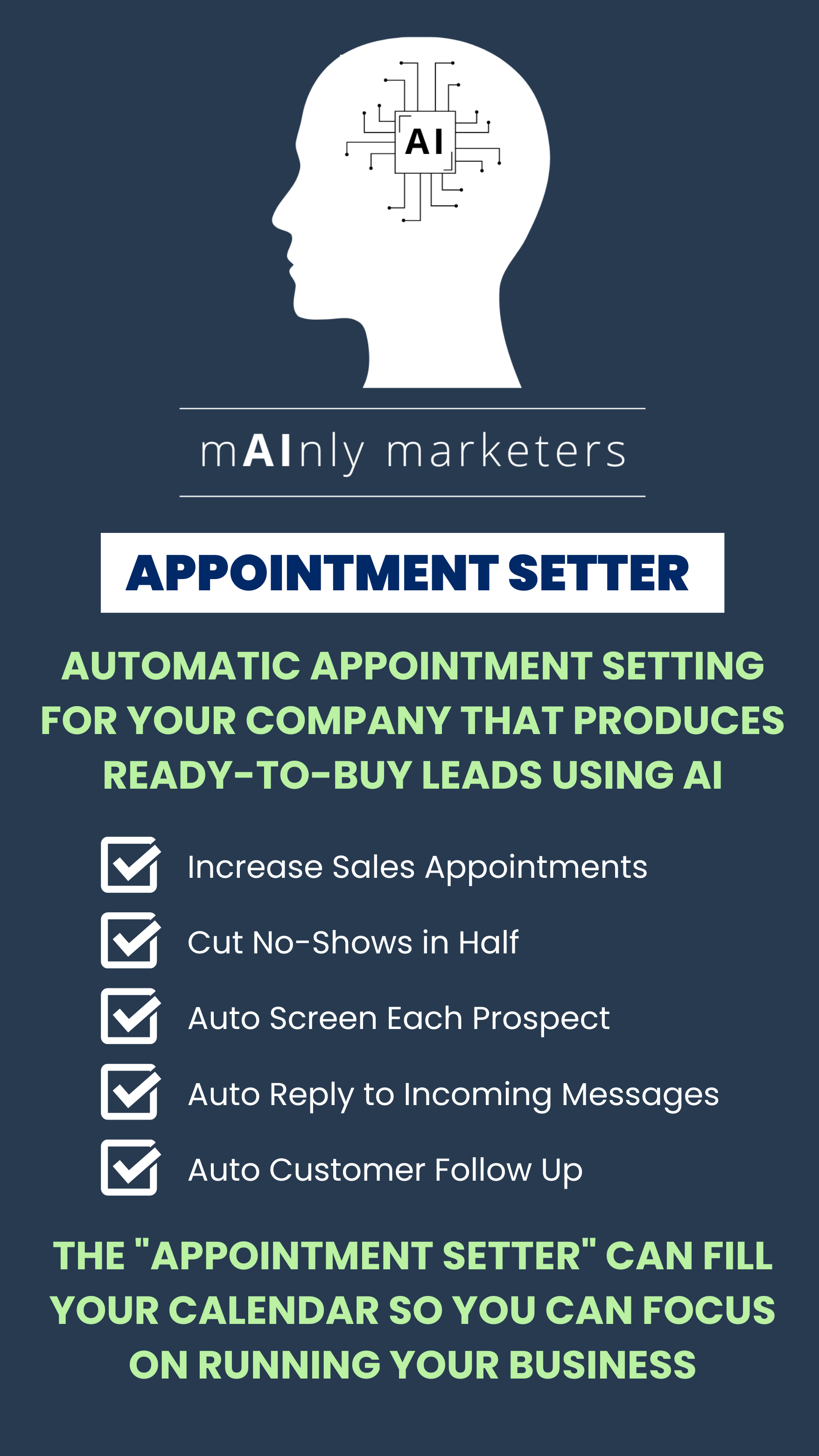 With the new 'Appointment Setter,' you'll experience a paradigm shift in the way you manage your appointments leveraging A.I. technology. Say goodbye to tedious coordination, missed opportunities, and scheduling conflicts. Embrace the future of appointment booking and unlock a world of convenience and efficiency with the help of Artificial Intelligence.